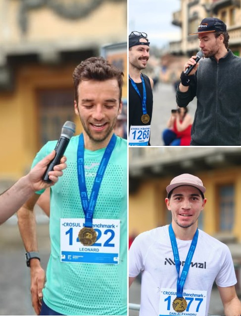 Semimaraton Brașov Top 3 masculin cros Benchmark Brasov, Romania cu Leonard Mitrica urmat de Andrei Ivanescu și de Dani Hriscu. Sursa Facebook Semimaraton.