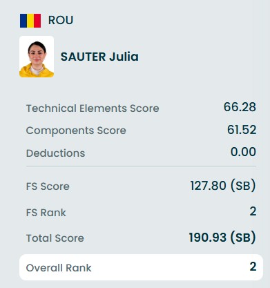 Cel mai bun rezultat al Juliei Sauter spre satisfacția antrenoarei Roxana Hartmann este obținut la Jocurile Olimpice din Italia.