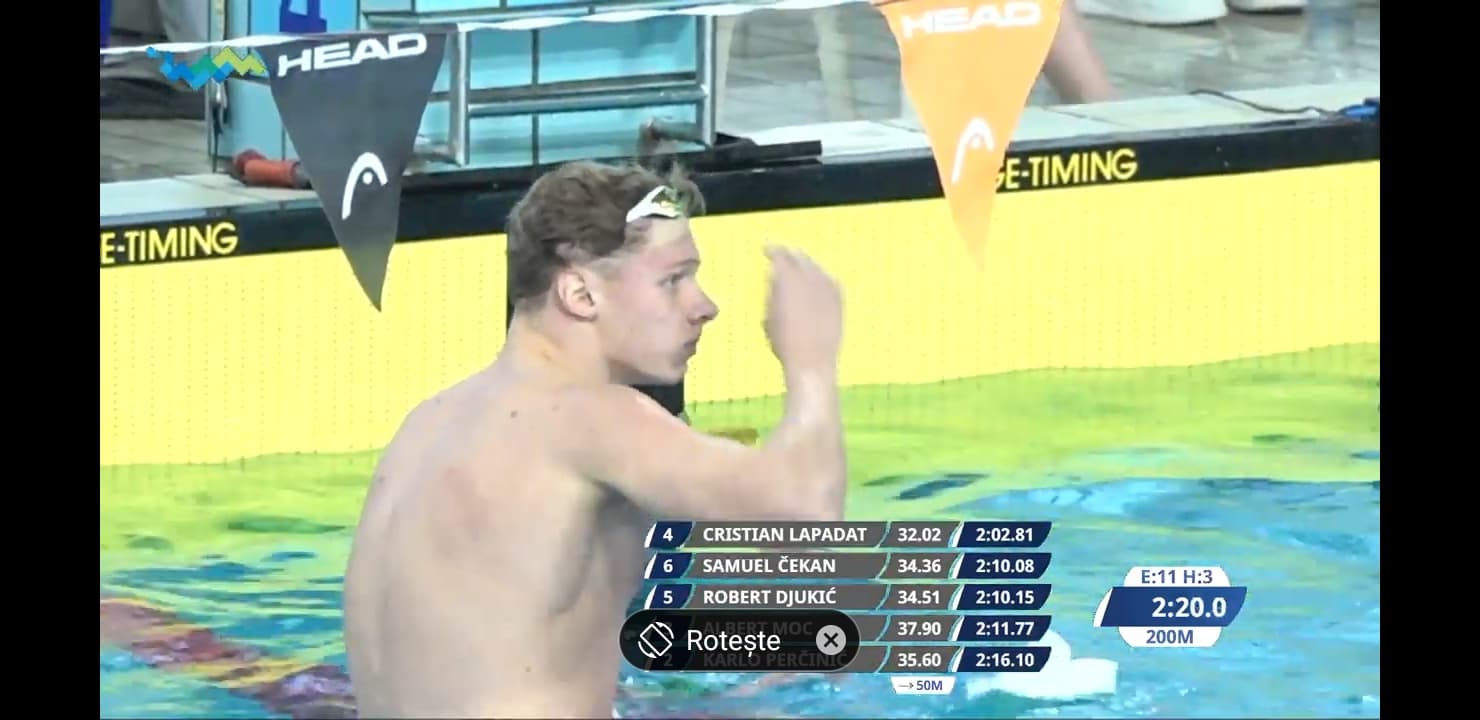 Cristian Lăpădat a făcut baremul european la Cupa României la Înot, destinată Seniorilor, Tineretului și Juniorilor! Tocmai a obținut locul 1 la Categoria Tineret și Seniori la procedeul 400 mixt!