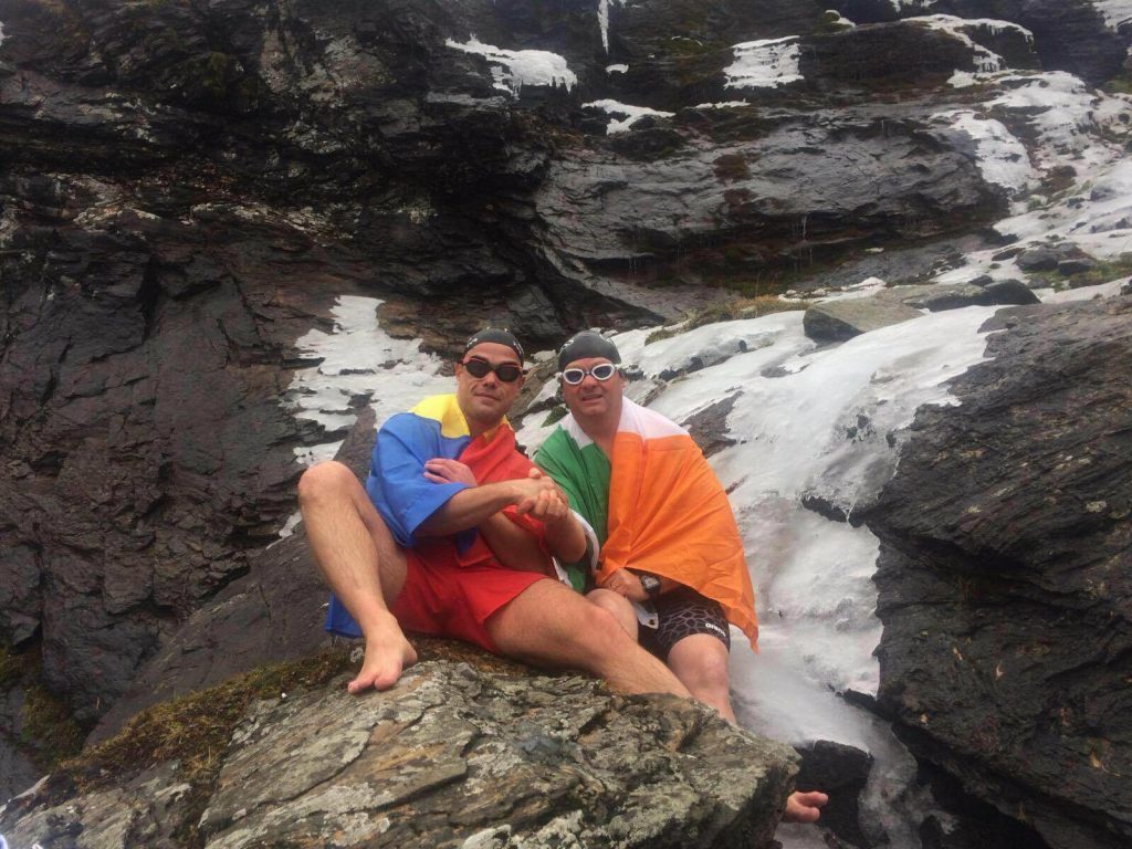 Celebrul Ice Swimmer irlandez Ger Kennedy a vizitat Romania saptamana trecuta. Ger a fost invitat in Romania de Dragomir Streaza, omul care a „lansat” inotul hivernal (ice swimming) in tara noastra si care „trage” din toate puterile sa promoveze acest sport si sa atraga cat mai multi adepti catre el. Dragomir a primit din partea irlandezului steagul IISA ( International Ice Swimming Asociation ), ca o recunoastere a eforturilor depuse in ultimii doi ani. IISA Romania are in acest moment statut, iar primul obiectiv al Asociatiei este participarea Romaniei la Campionatul Mondial de Ice Swimming din 2018, de la Tallin, Estonia. Ger Kennedy a fost nominalizat in 2016 la titlul de World Open Swimming Man of the Year.