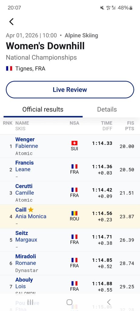 Rezultate importante pentru reprezentantele României la Campionatele Naționale din Franța și Slovacia. Ania Caill și Sofia Moldovan au evoluat la Coborâre,Slalom Uriaș.