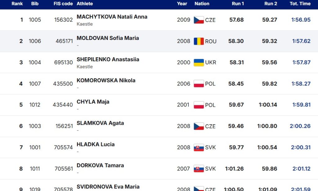 Rezultate importante pentru reprezentantele României la Štrbské Pleso și Tignes. Podium pentru Sofia Moldovan, loc patru pentru Ania Caill. Sofia Moldovan a urcat pe podium la Campionatele Naționale de Juniori desfășurate în Slovacia, după ce s-a clasat pe locul 2 în proba de slalom uriaș, într-un concurs organizat sub egida FIS. Sofia a câștigat întrecerea de vineri din Slovacia!