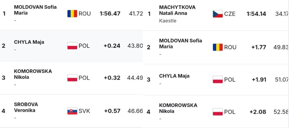 Sofia Moldovan a avut patru curse la Štrbské Pleso. Prima finalizată cu loc trei. A doua și a treia au fost încheiate cu loc doi în Slovacia. Pe a patra a câștigat-o.