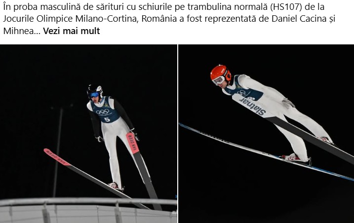 Sărituri cu schiurile și sanie rezultate obținute de Cacina, Spulber și de Buzățoiu. În proba masculină de sărituri cu schiurile pe trambulina normală (HS107) de la Jocurile Olimpice Milano-Cortina, România a fost reprezentată de Daniel Cacina și de Mihnea Spulber. Daniel Cacina s-a clasat pe locul 46, cu 109,6 puncte, iar Mihnea Alexandru Spulber ocupă locul 49, cu 91,0 puncte. Competiția este la cel mai înalt nivel, cu sportivi din națiuni cu tradiție în această disciplină, iar participarea reprezintă o experiență extraordinară din care înveți lecții importante. Anunță Federația Română de Schi Biatlon. Ioana Corina Buzățoiu a fost pe 25. S-au întrecut pentru cel mai bun loc după două sesiuni germancele. Julia Taubitz a fost cea mai rapidă.